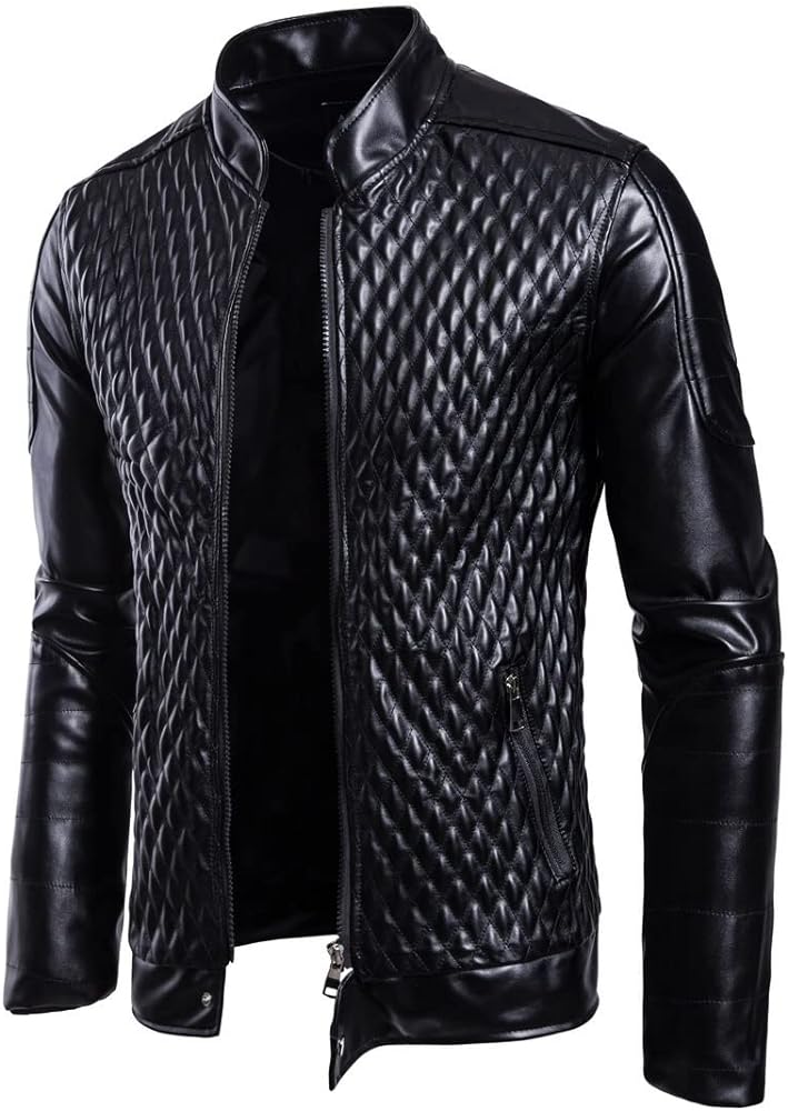 This leather jacket features a front zipper and is quilted with a foam sheet for enhanced comfort and warmth. Available in a variety of colors, it combines functionality with a sleek, stylish design.