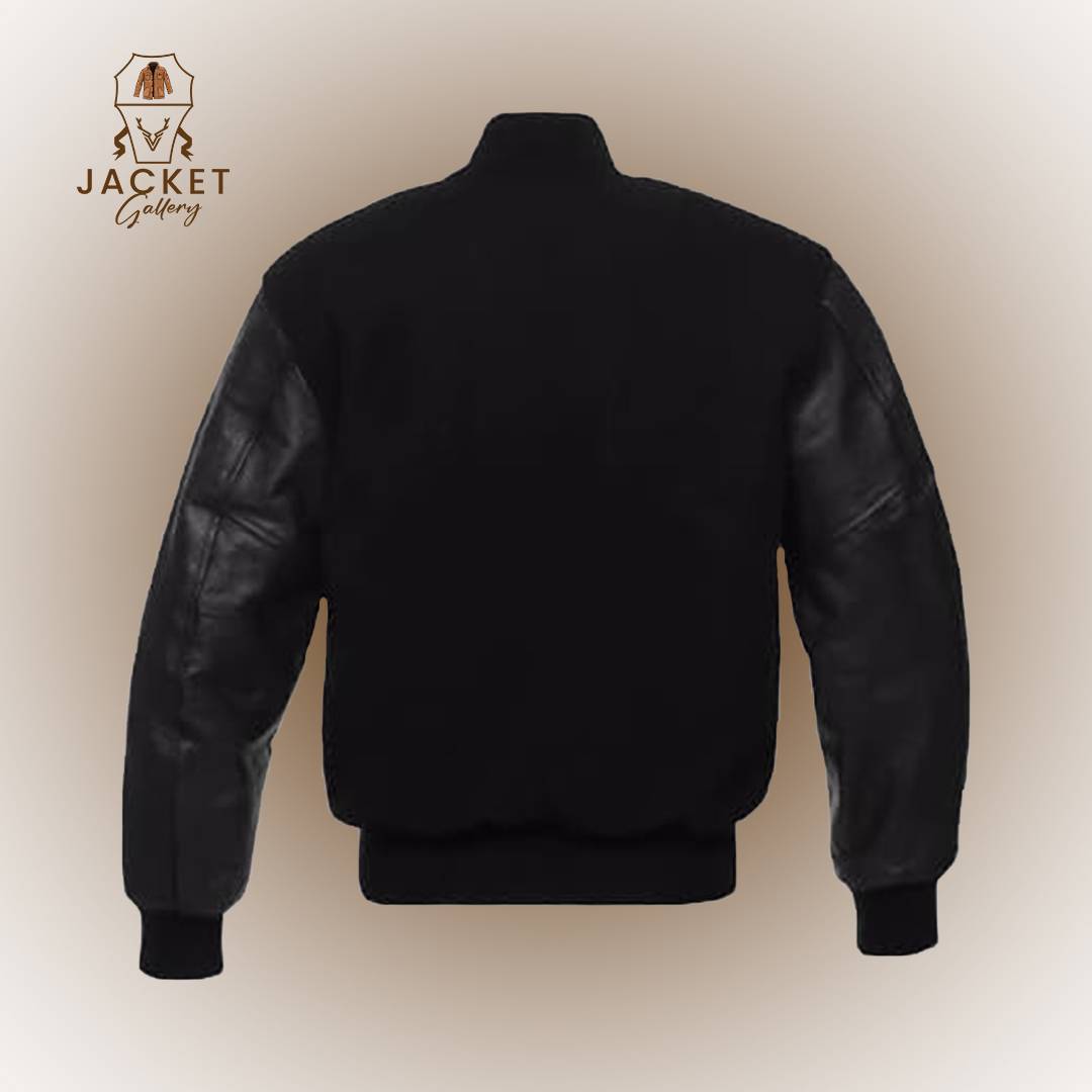 • This varsity jacket comes with a wool body, with leather sleeves. The high-quality Wool rib is used for stand up collar, cuffs and hem.